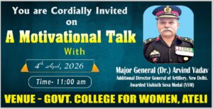 राजकीय महिला महाविद्यालय, अटेली मंडी में छात्राओं को सेना में करियर बनाने के लिए प्रेरित करने हेतु एक…