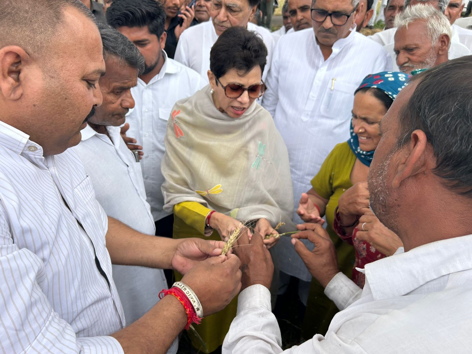 ओलावृष्टि से फसल नुकसान पर सैलजा का दौरा : प्रभावित गांवों में लिया जायजा , किसानों से की बातचीत : मुआवजे व राहत की उठाई मांग