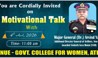 अटेली में मोटिवेशनल टॉक कल : मेजर जनरल अरविंद यादव देंगे मार्गदर्शन , युवाओं को अनुशासन व लक्ष्य का संदेश