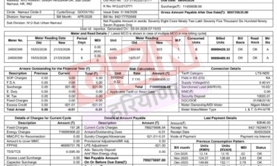 नारनौल2 days agoनारनौल में 78 करोड़ का बिजली बिल : 8 दिन में 80 करोड़ पार होने की चेतावनी , विभाग ने मानी गड़बड़ी, जांच शुरू